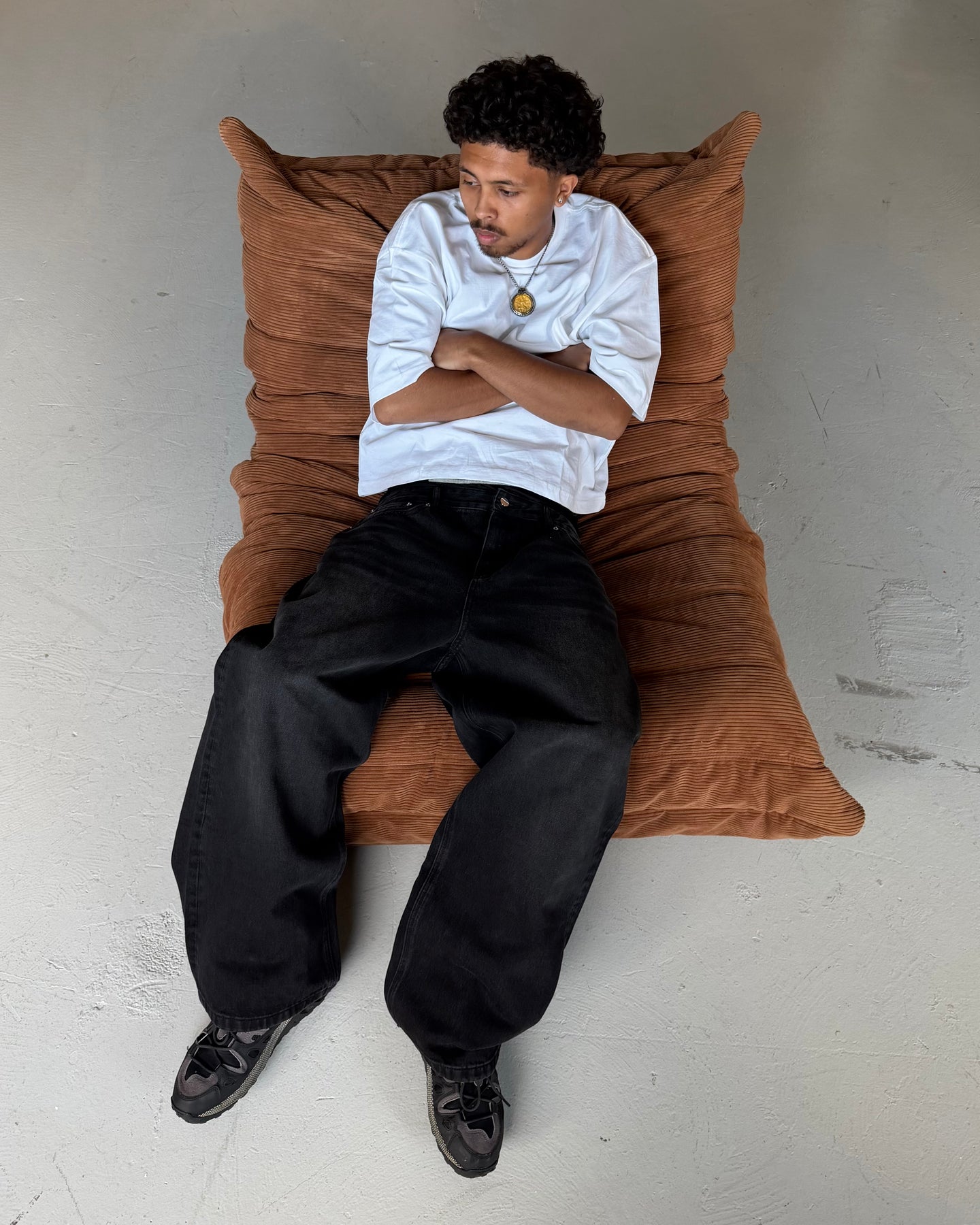 Introducing our Embroidered Billiard Patch Baggy Jeans – 100% cotton and 14.5oz, 10-inch leg opening, Pre-made.